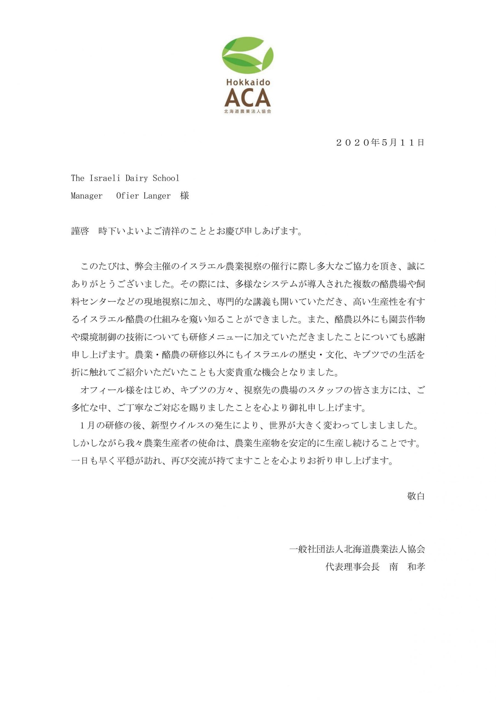 Thank you very much for your great assistance to our Israel Agriculture Tour.